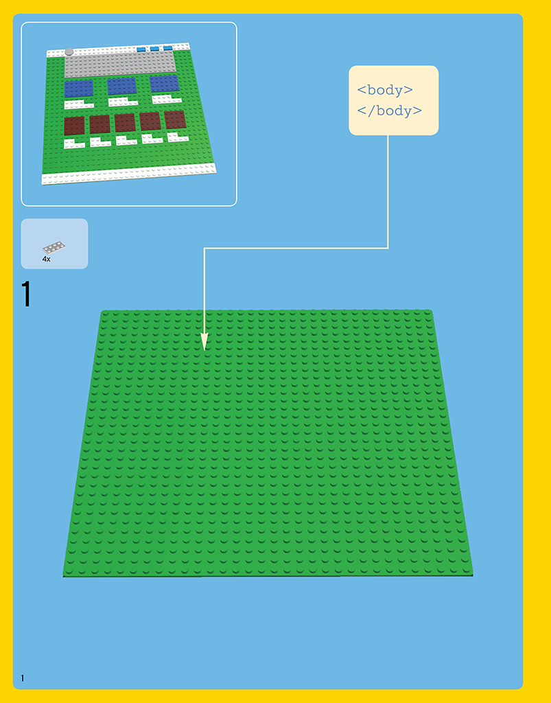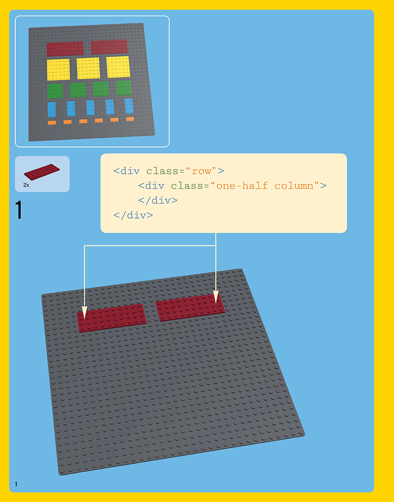 Get your hands building with bricks. Here's a few basic instructions to build your webpage, grid, and typopgraphy.